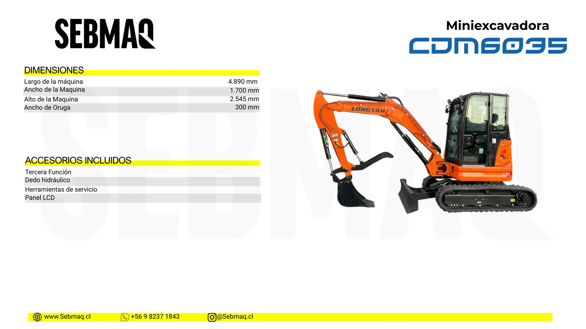 La Miniexcavadora Longyan es una máquina que destaca por su versatilidad y rendimiento, está equipada con un motor Kubota de origen japonés, cabina espaciosa con aire acondicionado para trabajar cómodamente en diferentes condiciones climáticas, cuenta con tercera y cuarta función hidráulica lo que amplía sus capacidades para ejecutar tareas más complejas, es ideal para trabajos donde requieras potencia y eficiencia, además su operación es simple y se puede trasladar fácilmente a su faena o lugar de trabajo.